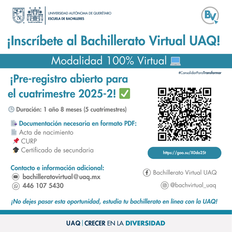 Dadas las circunstancias actuales, en que la educación virtual recibió un fuerte impulso, es que justo se pensó en la necesidad de que la Universidad Autónoma de Querétaro, por medio de la Escuela de Bachilleres, brindara esta opción educativa al sector de la población referido, como parte de su sentido de responsabilidad y compromiso social.